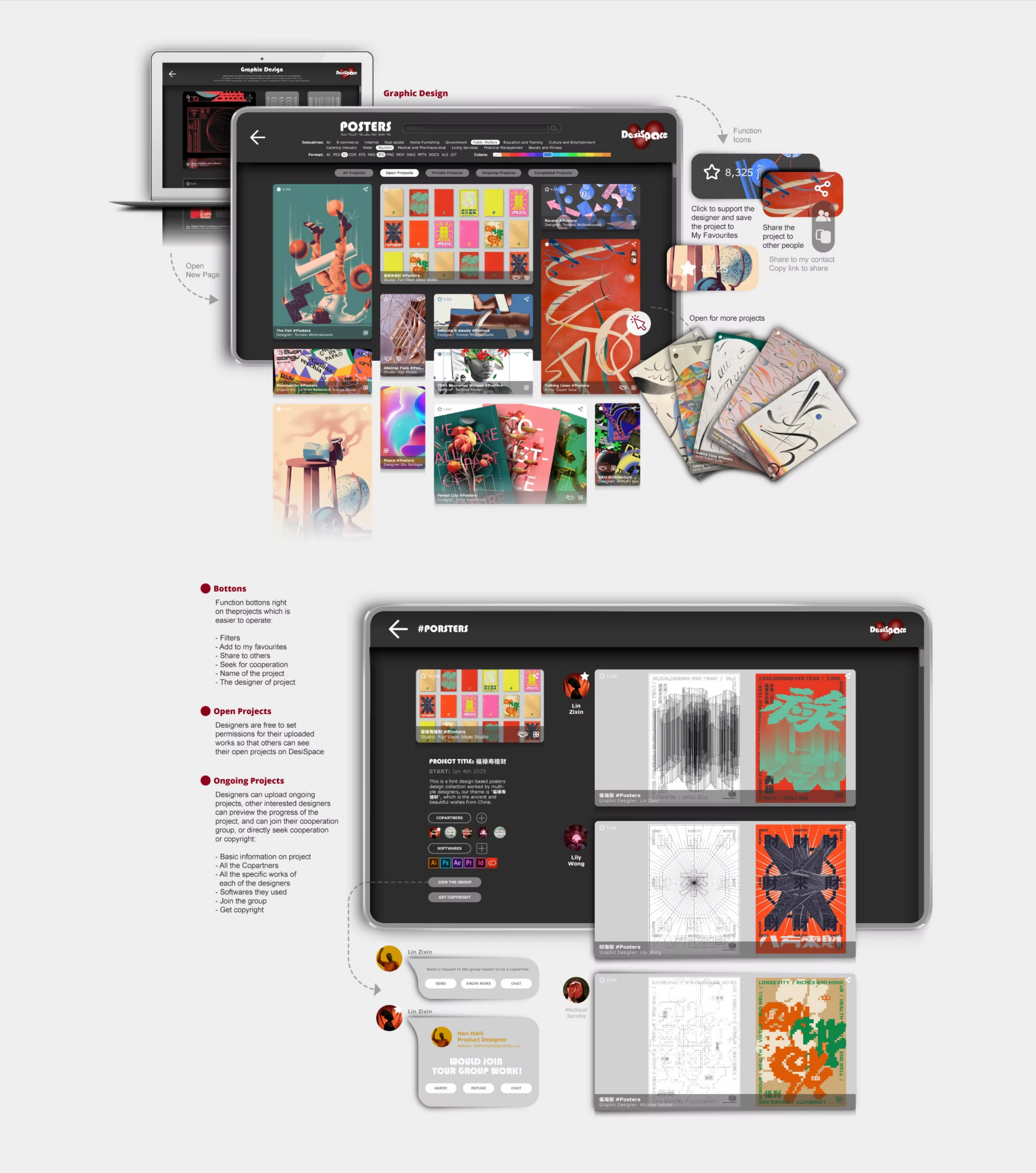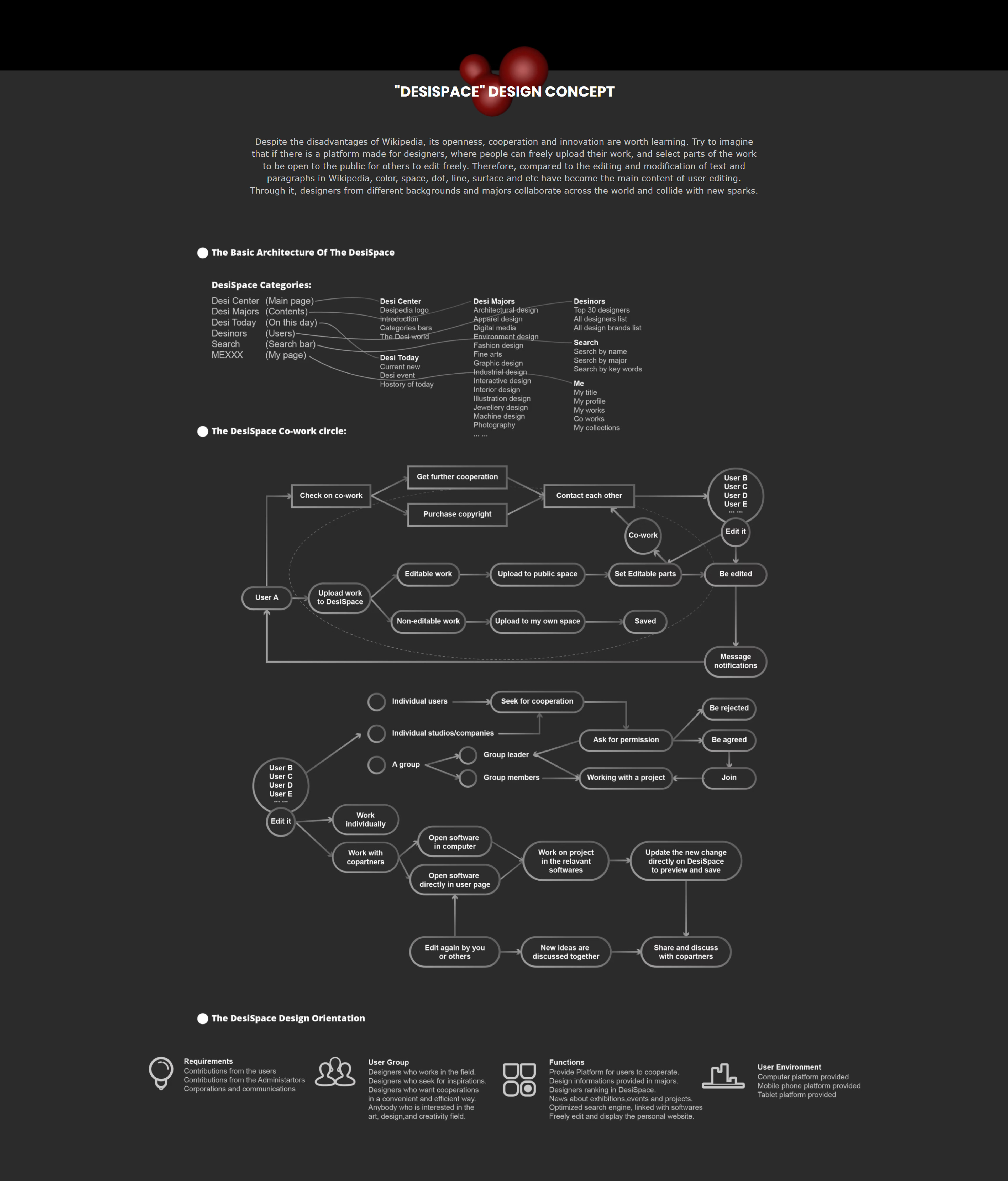 The project was inspired by Wikipedia. I aim to create an intelligent platform that designers and artists from different backgrounds could collaborate, collide, and integrate to create an unconstrained world that could provide more inspiration and new elements for real-world design.