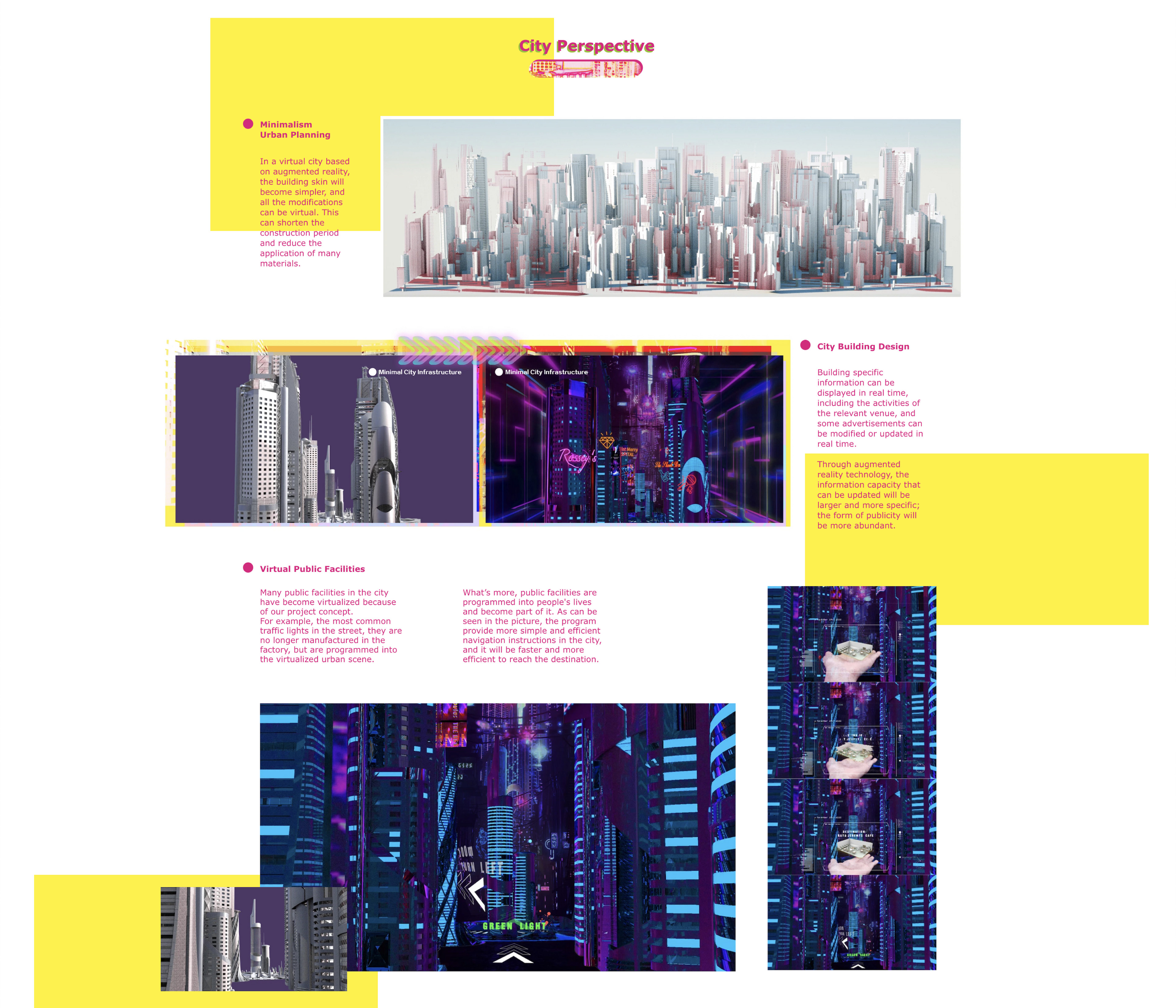 Based on current technological advances and the future development of virtual technology, humans can experience virtual scenes and content in a minimal real environment. Virtual City is my vision for the planning of future urban cities, as well as the future human living experience.